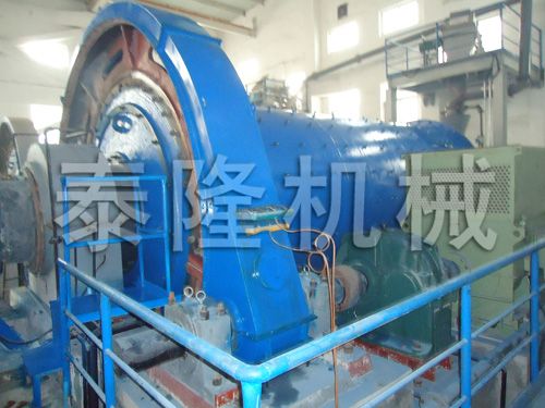 水煤漿球磨機主要由進料裝置、主軸承、回轉部分、傳動裝置、糶裝置、高壓起動裝置及潤滑系統組成。原料經喂料設備由進料裝載進入磨內,熱風由進風管進入磨內,隨著磨機筒體的旋轉,煤與熱風在磨進行熱交換,煤在磨內被粉碎和研磨,在煤被研磨的同時,細粉被通過磨內的熱風,經由出料裝置帶出磨機。